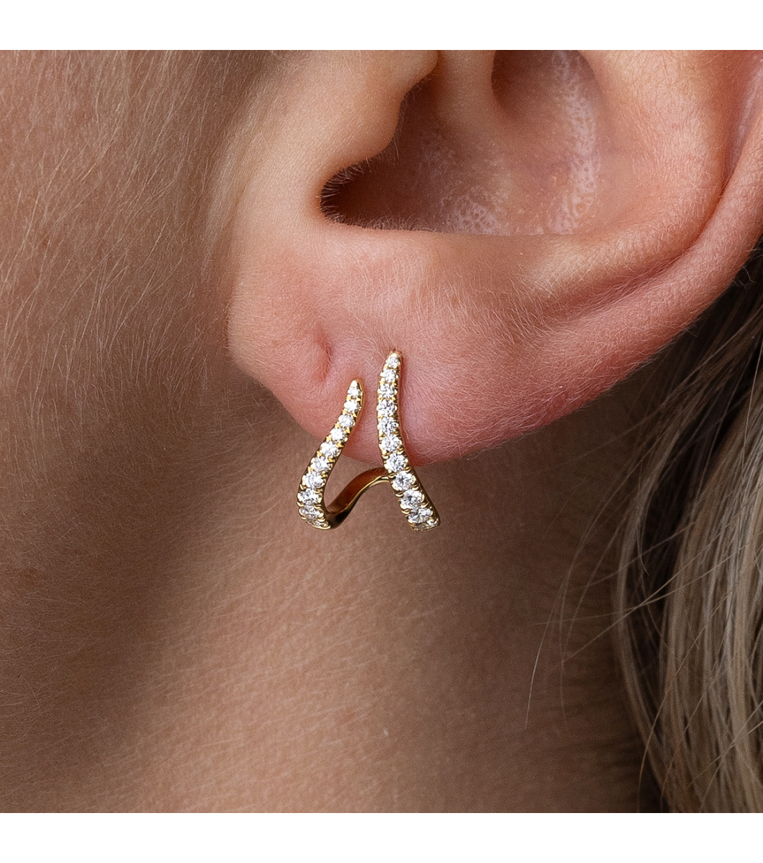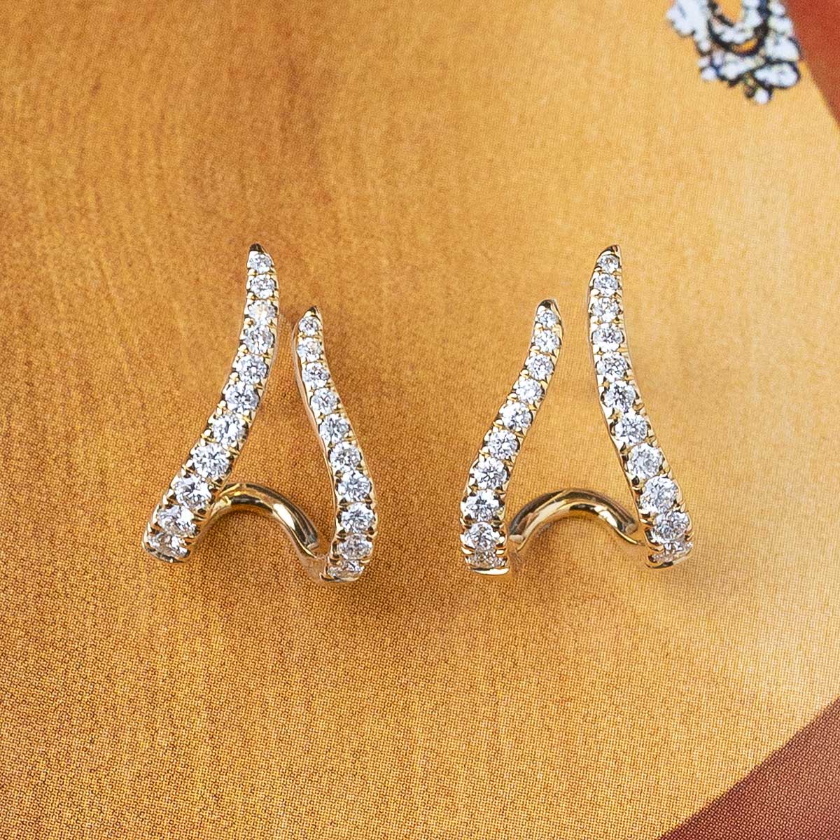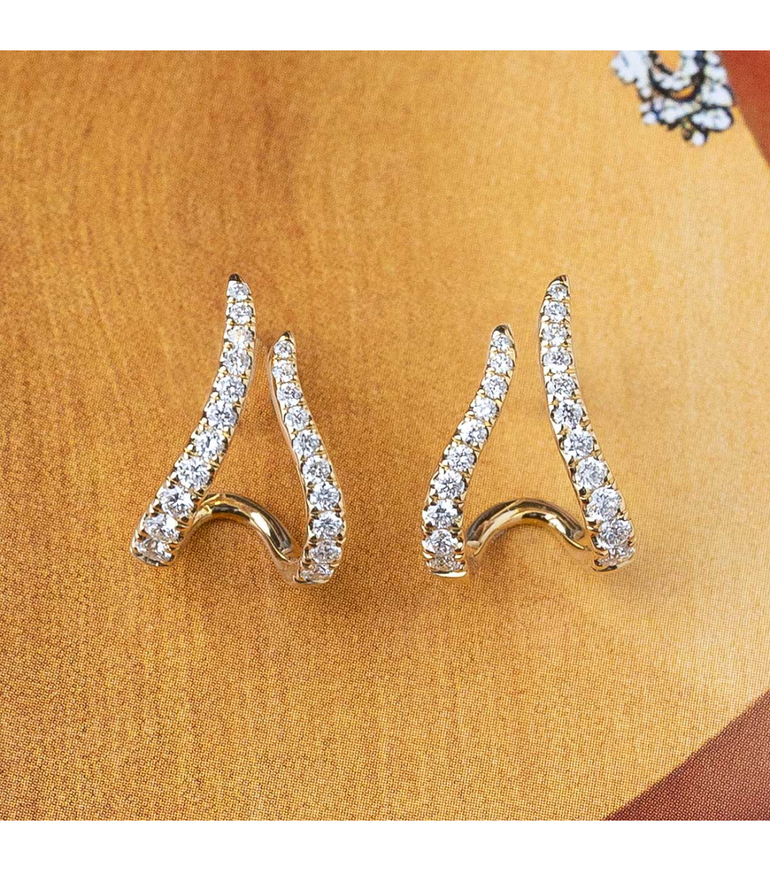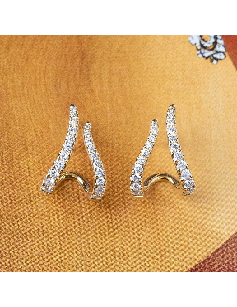 Pendientes trepadores "Nianh" de oro amarillo de 1ª Ley de 18Kt. con diamantes talla brillante 0,37 cts. Un detalle lleno de elegancia y significado.