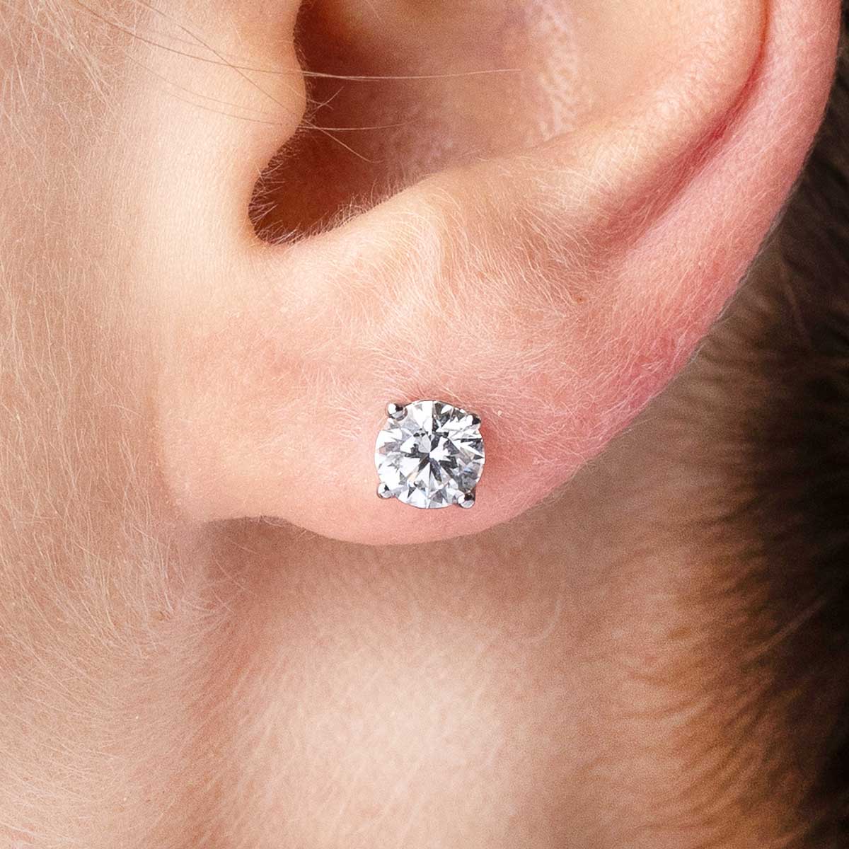 Pendientes solitarios "Amara" de oro blanco de 1ª Ley de 18Kt, con diamantes talla brillante 1,00 Cts Fvs2 GÍA. Un resplandor sereno y puro.