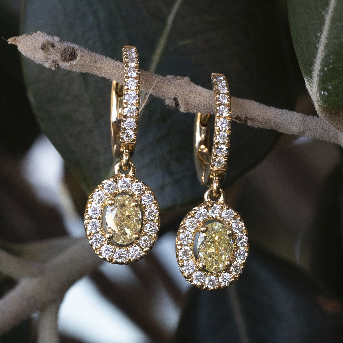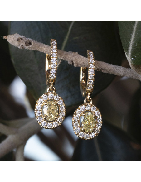 Pendientes "Diana" de oro amarillo de 18 quilates con diamantes. Elegancia radiante para una entrada triunfal.
