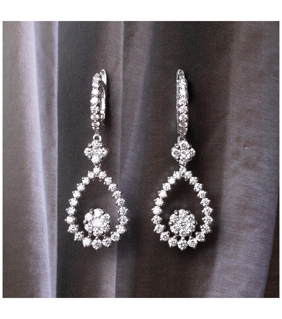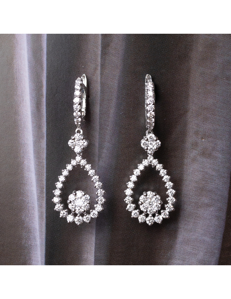 Pendientes largos "Elisa" de oro blanco con diamantes talla brillante (1,80 Cts.). Su brillo deslumbrante los convierten en el complemento ideal para cualquier vestido de novia.