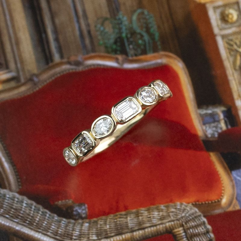 • Evitar Químicos y Actividades Rigurosas: Es recomendable quitarse el anillo de eternidad durante actividades que puedan exponerlo a químicos fuertes o golpes, como la limpieza del hogar o la práctica de deportes. Los químicos pueden dañar el metal y las piedras, y los golpes pueden desalinear las gemas.