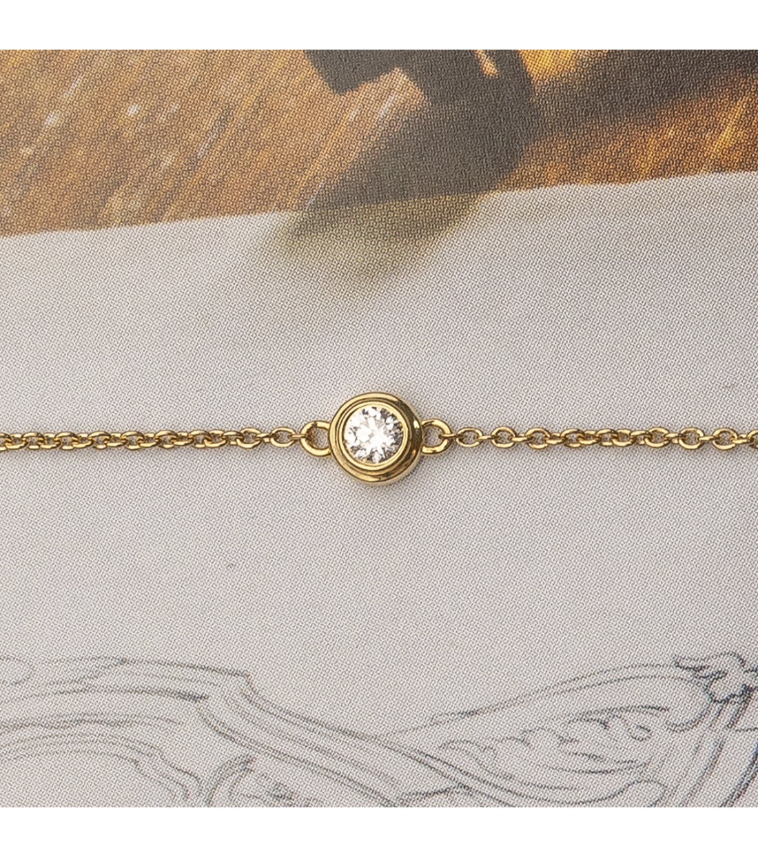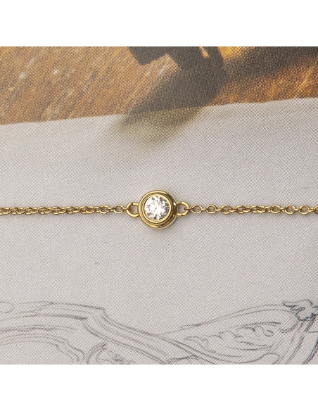 Pulsera con cadena "Sandra" de oro de amarillo de 18Kt. con diamante central. Elegancia atemporal en una pieza minimalista.