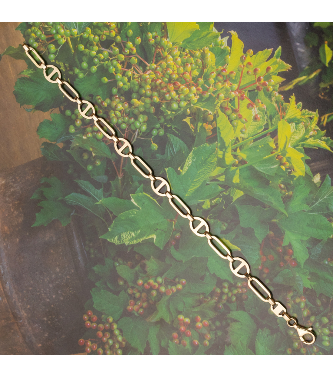 PULSERA "SERENA" ESLABONES OVALADOS Y MARINA PLANA DE ORO AMARILLO