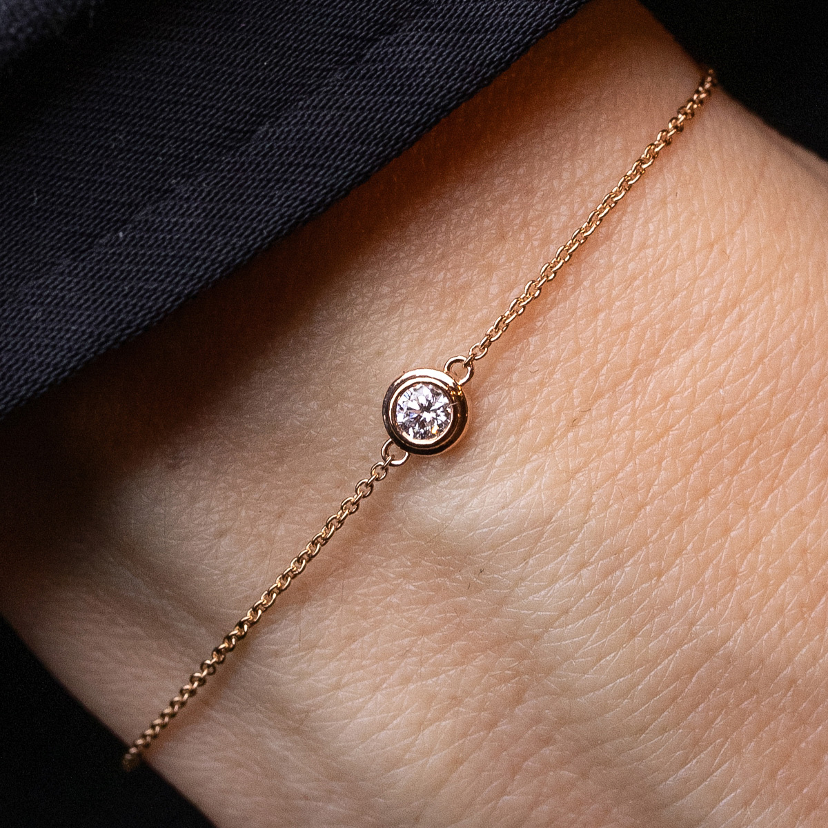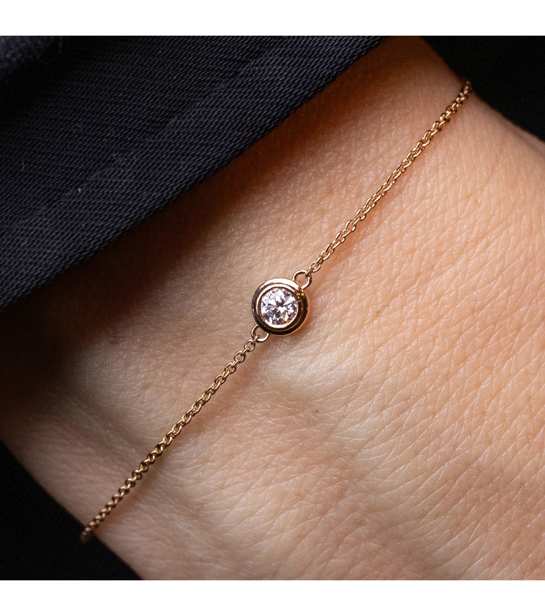 Pulsera de cadena "Azahara" de oro amarillo de 18Kt con solitario en diamante talla brillante 0,10 Cts. La simplicidad convertida en lujo.