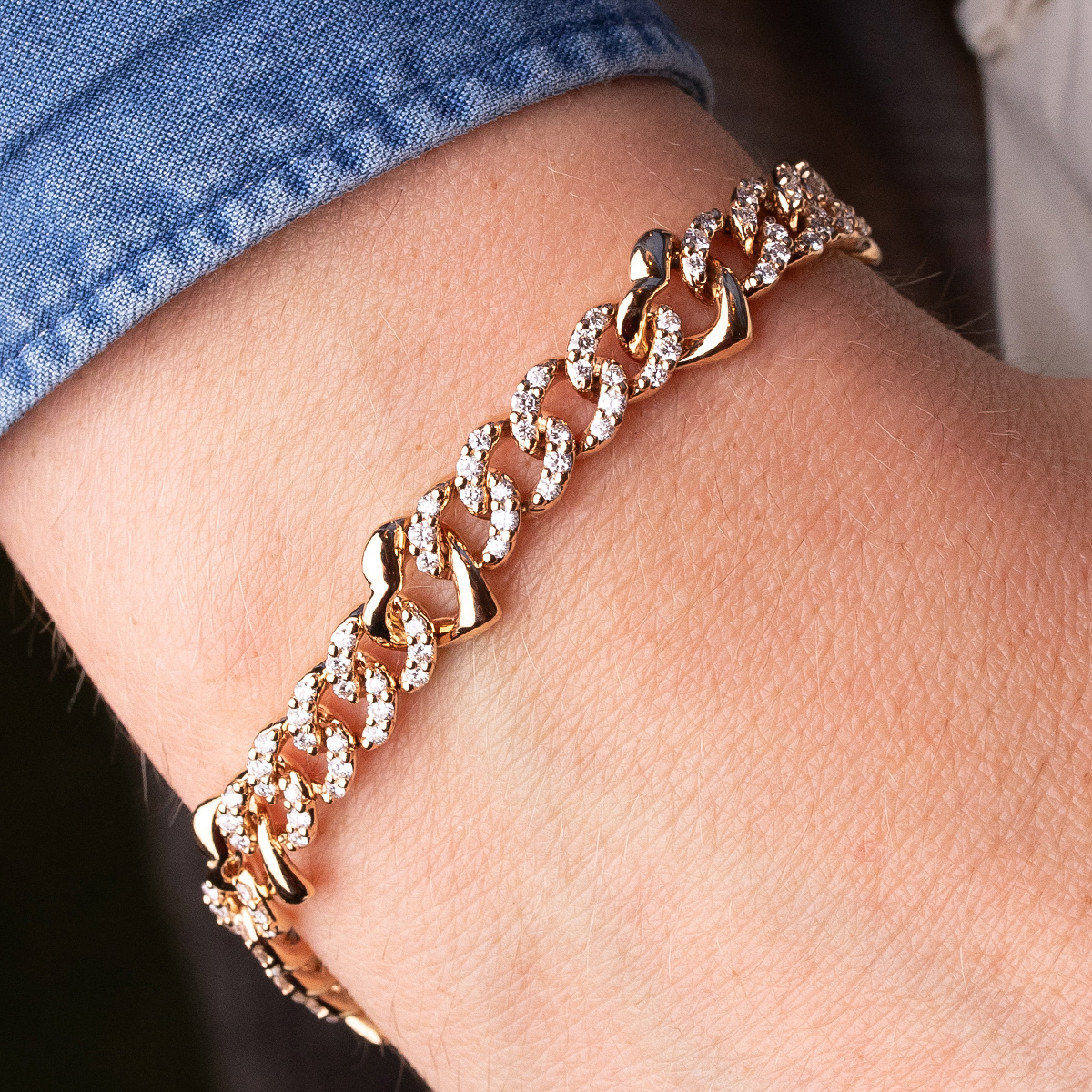 Pulsera de cadena barbada "Aspen" de oro rosa de 18Kt. con diamantes talla brillante 2,30 Cts. Una joya de impacto y distinción.