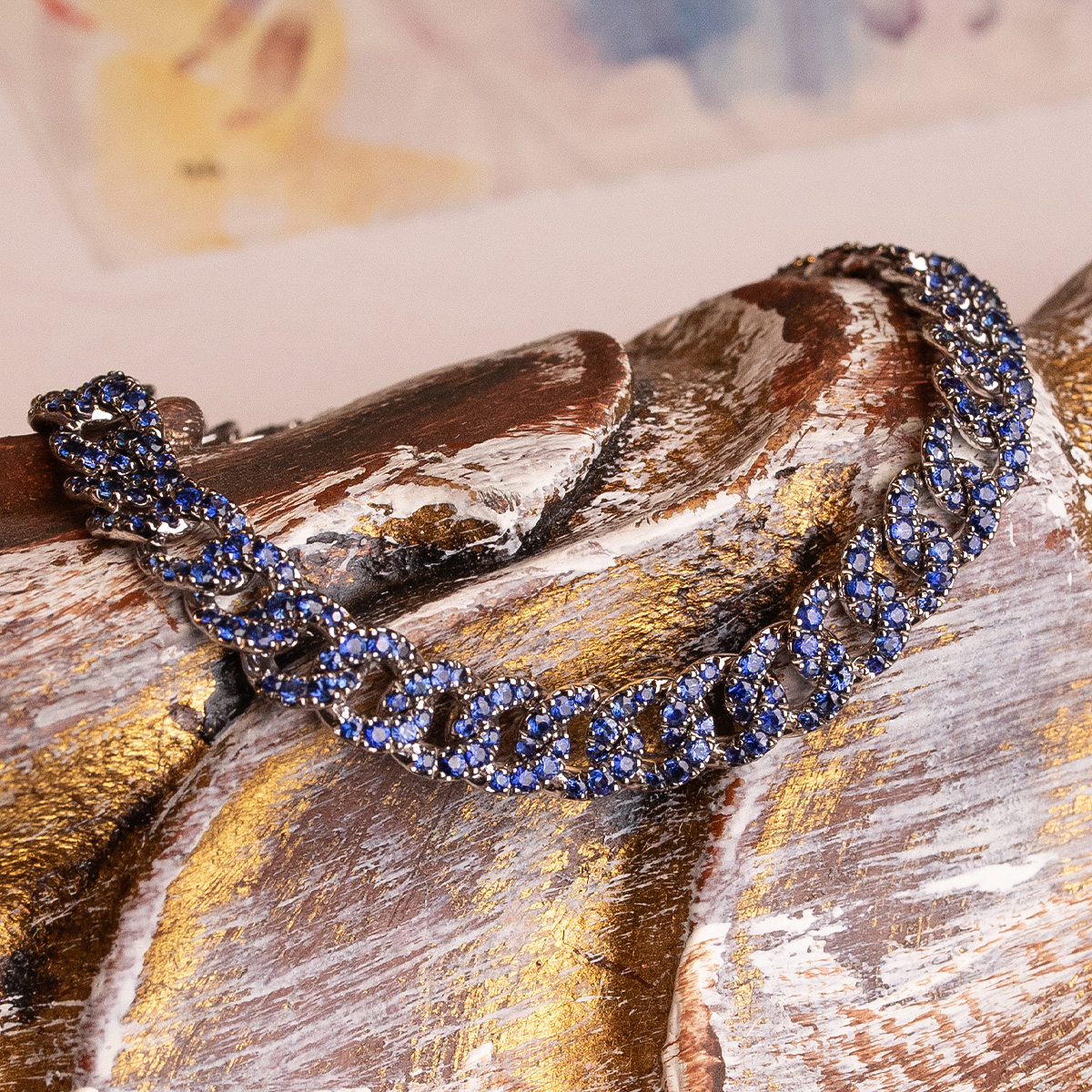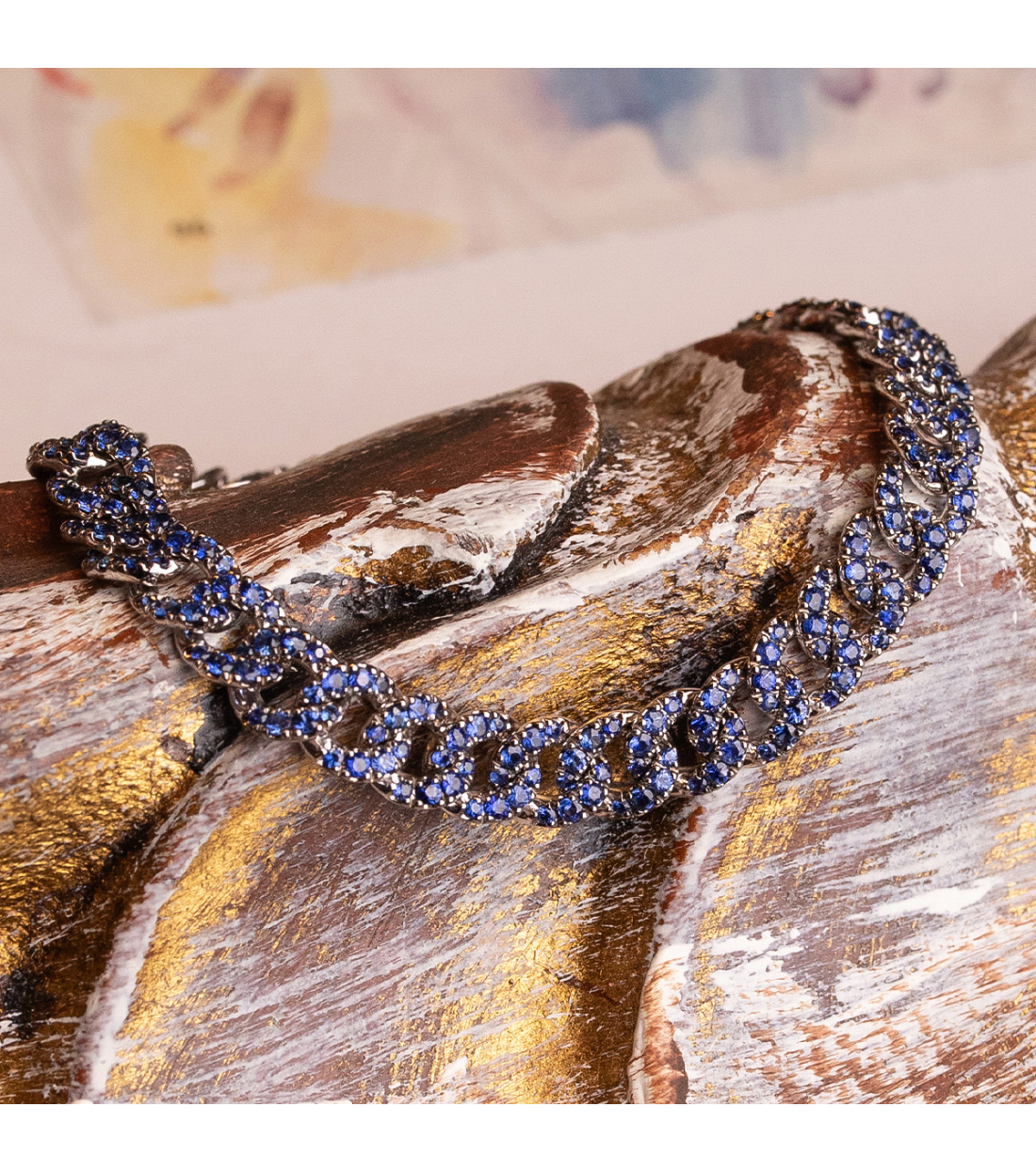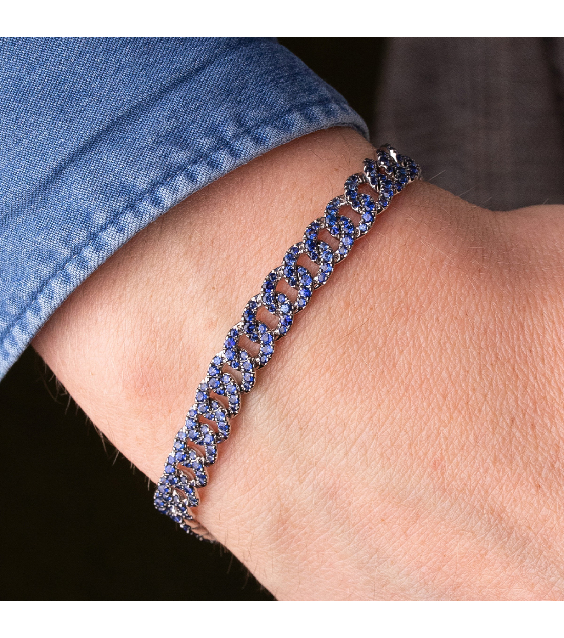Pulsera de cadena barbada "Chase" de oro blanco de 18Kt. con zafiros talla brillante 3,95 Cts. Una joya de impacto y distinción.
