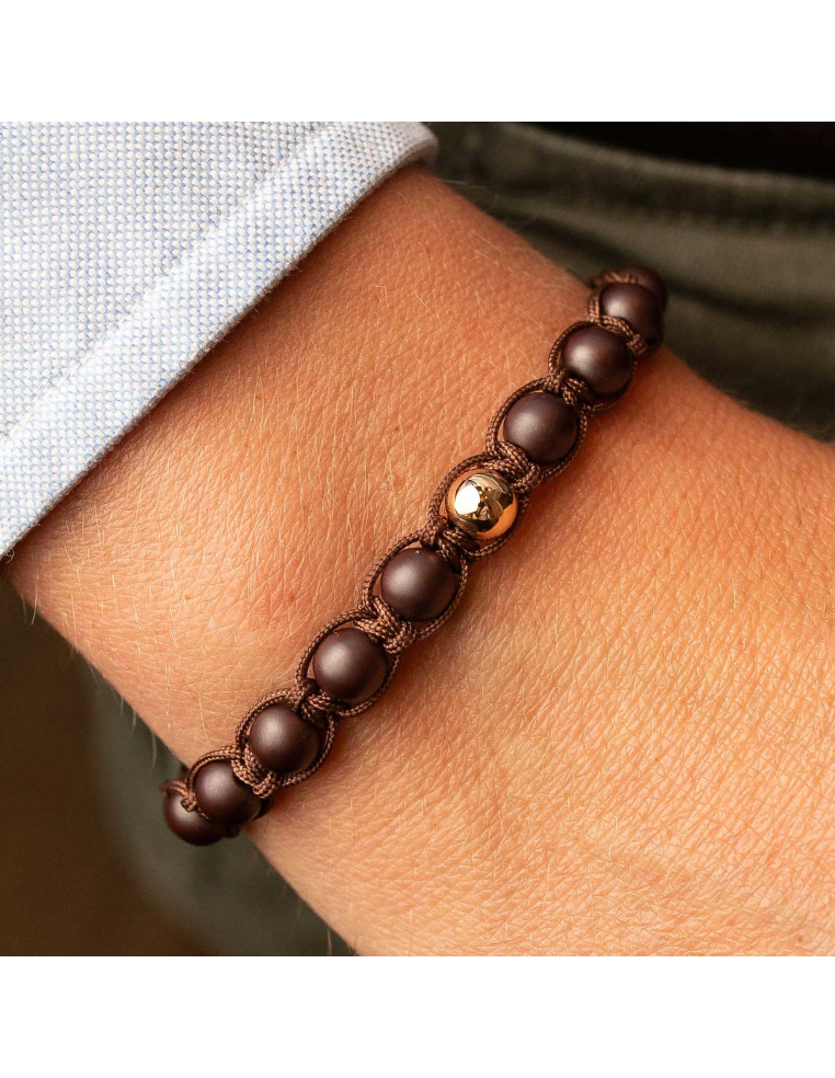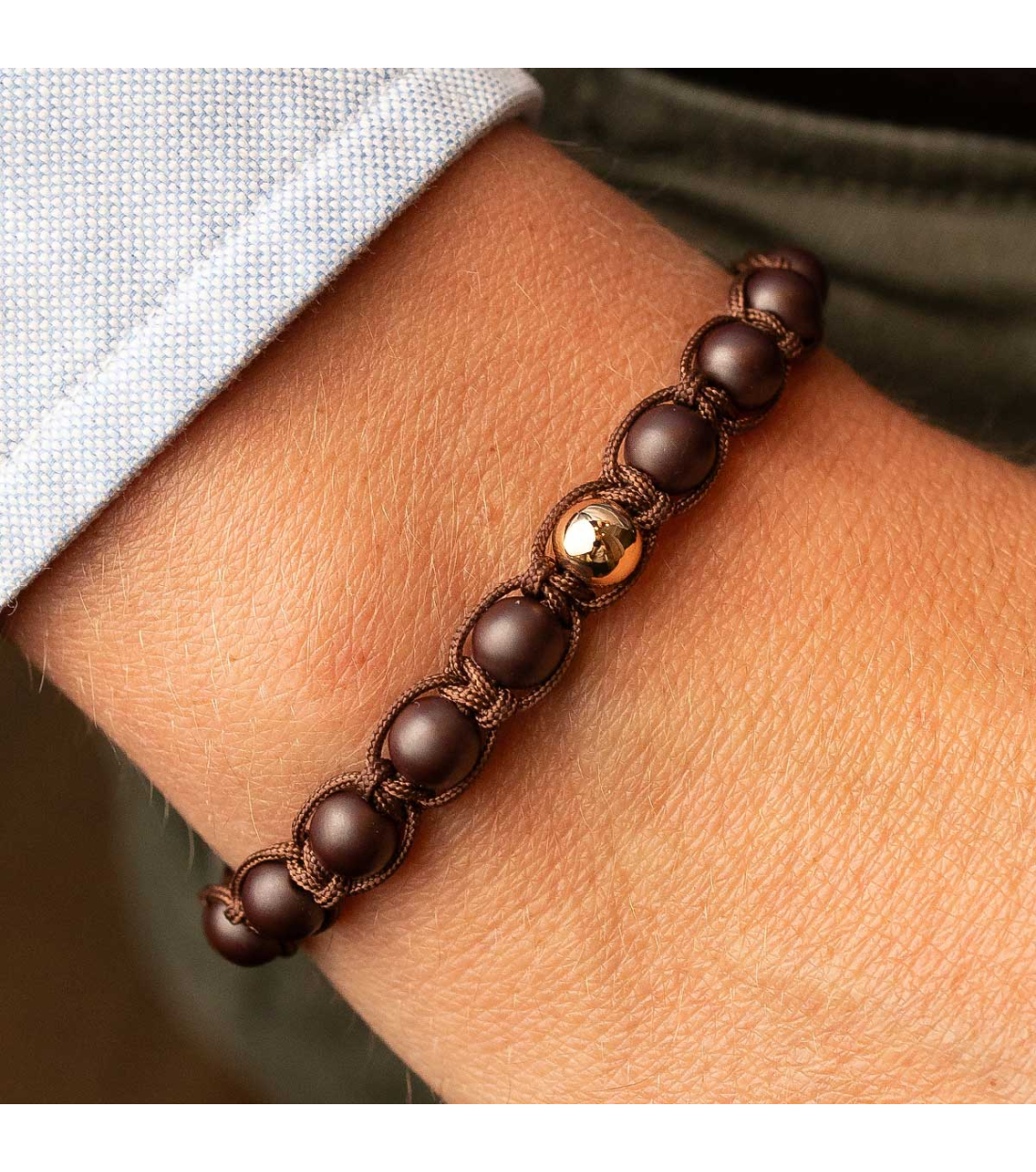 PULSERA "ATIYA" DE HILO MARRÓN CERÁMICA Y ORO ROSA
