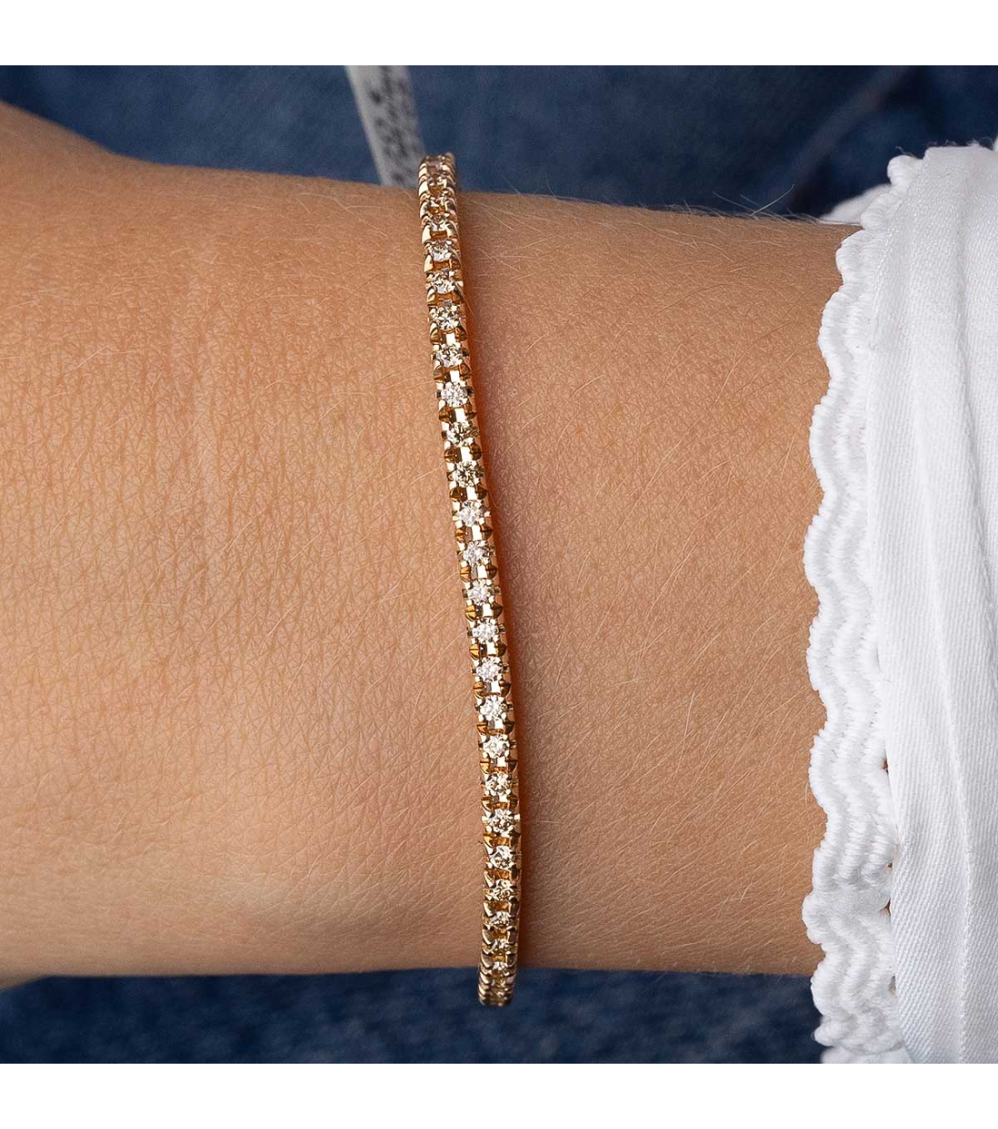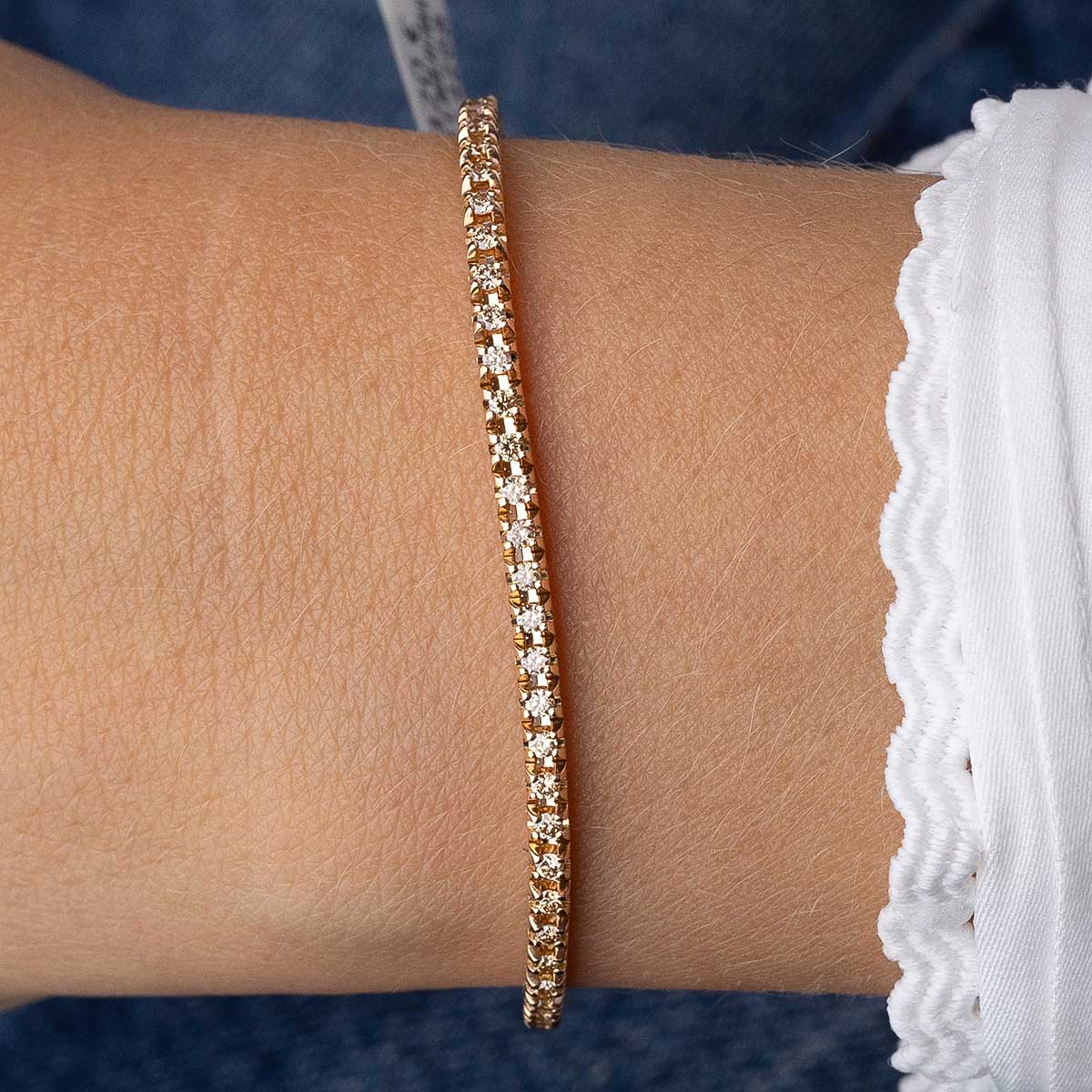 Pulsera riviére "Cora" de oro rosa de 1ª Ley de 18Kt. y diamantes brown talla brillante 1,10 cts. Un deslumbrante clásico.