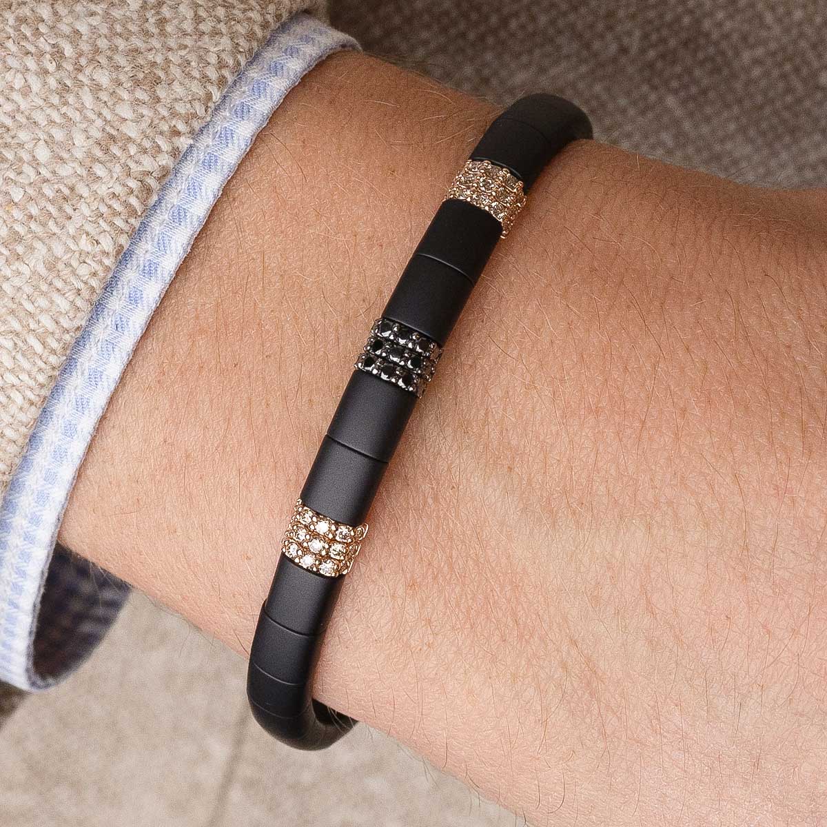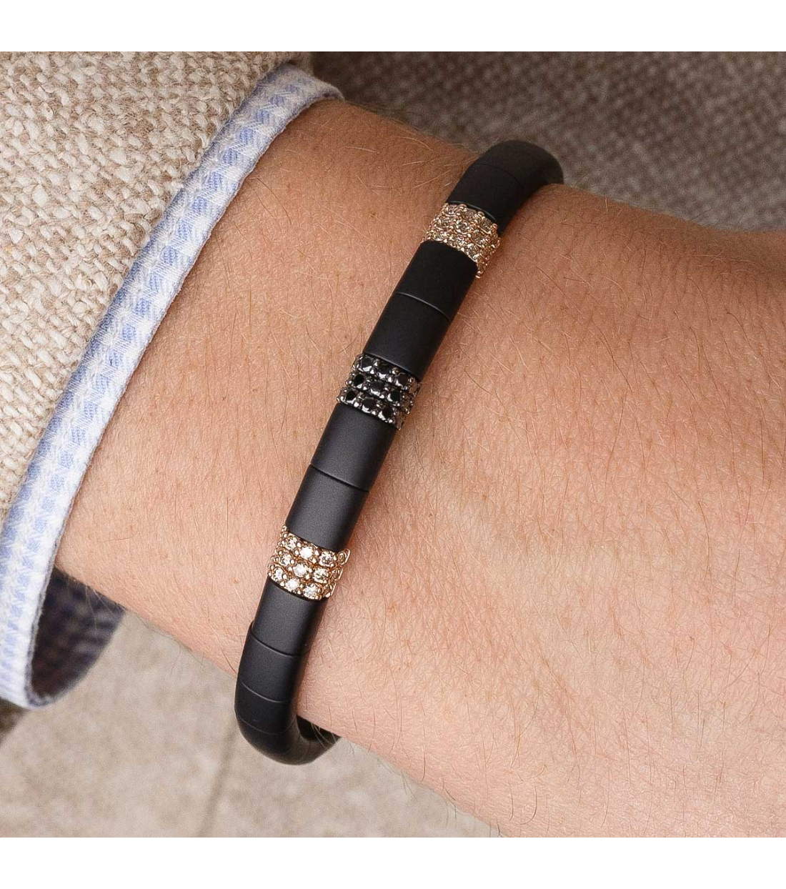 Pulsera para hombre "Elvi" de oro rosa y oro rutenio de 1ª Ley de 18Kt. con diamantes brown talla brillante 0,42 cts. y diamantes negros 0,21 cts. Elegancia versátil para el hombre moderno.