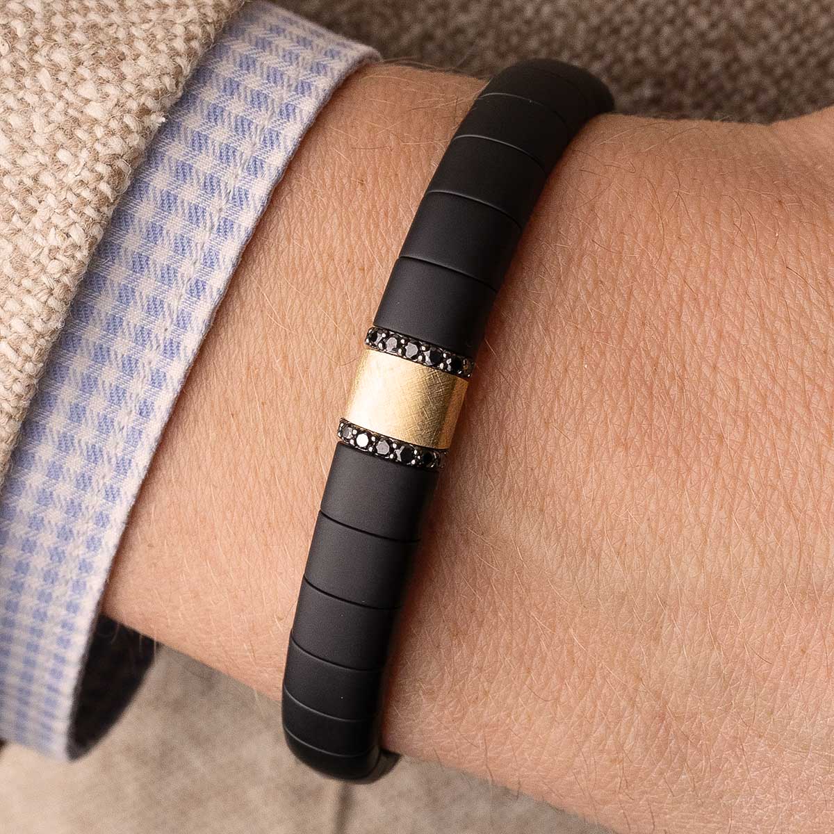 PULSERA "ZAIR" DE CERAMICA, ORO AMARILLO Y DIAMANTES NEGROS