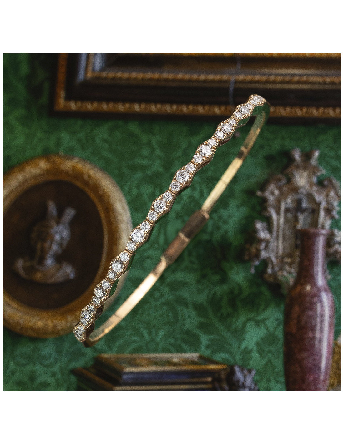 Pulsera rígida "Almudena" de oro rosa y diamantes talla brillante. Luminosidad y elegancia para tu muñeca.