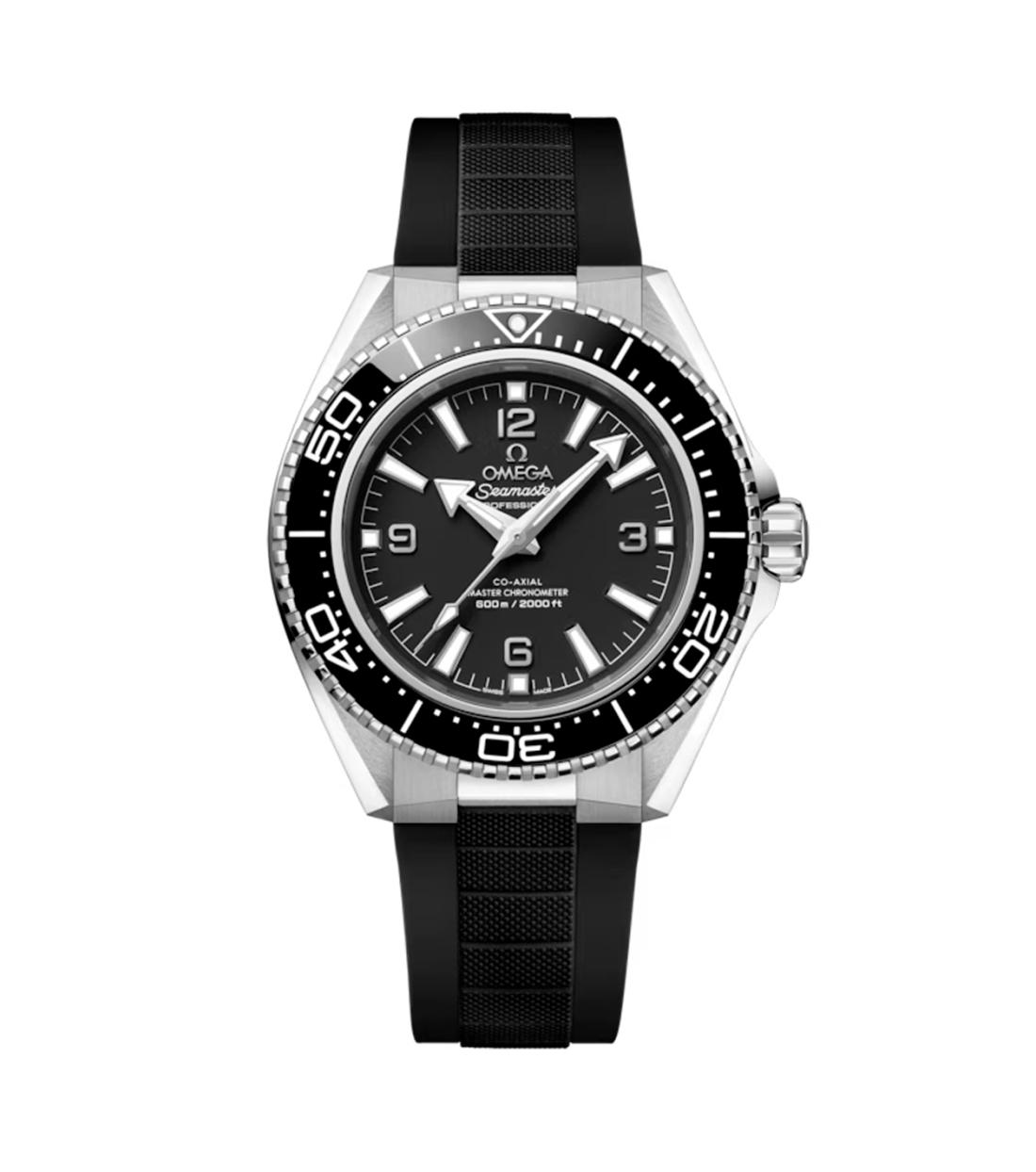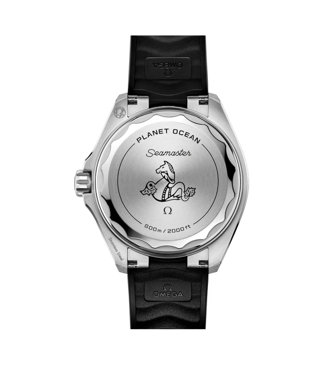 Accionado por el movimiento Co-Axial Master Chronometer calibre 8912, este Seamaster Planet Ocean se presenta en una pulsera de caucho negro con cierre desplegable y un eslabón de unión a la caja en acero noble. En la cara posterior del reloj, el fondo de caja atornillado está realizado en titanio de grado 5 pulido y cepillado y muestra el famoso emblema del hipocampo de OMEGA.